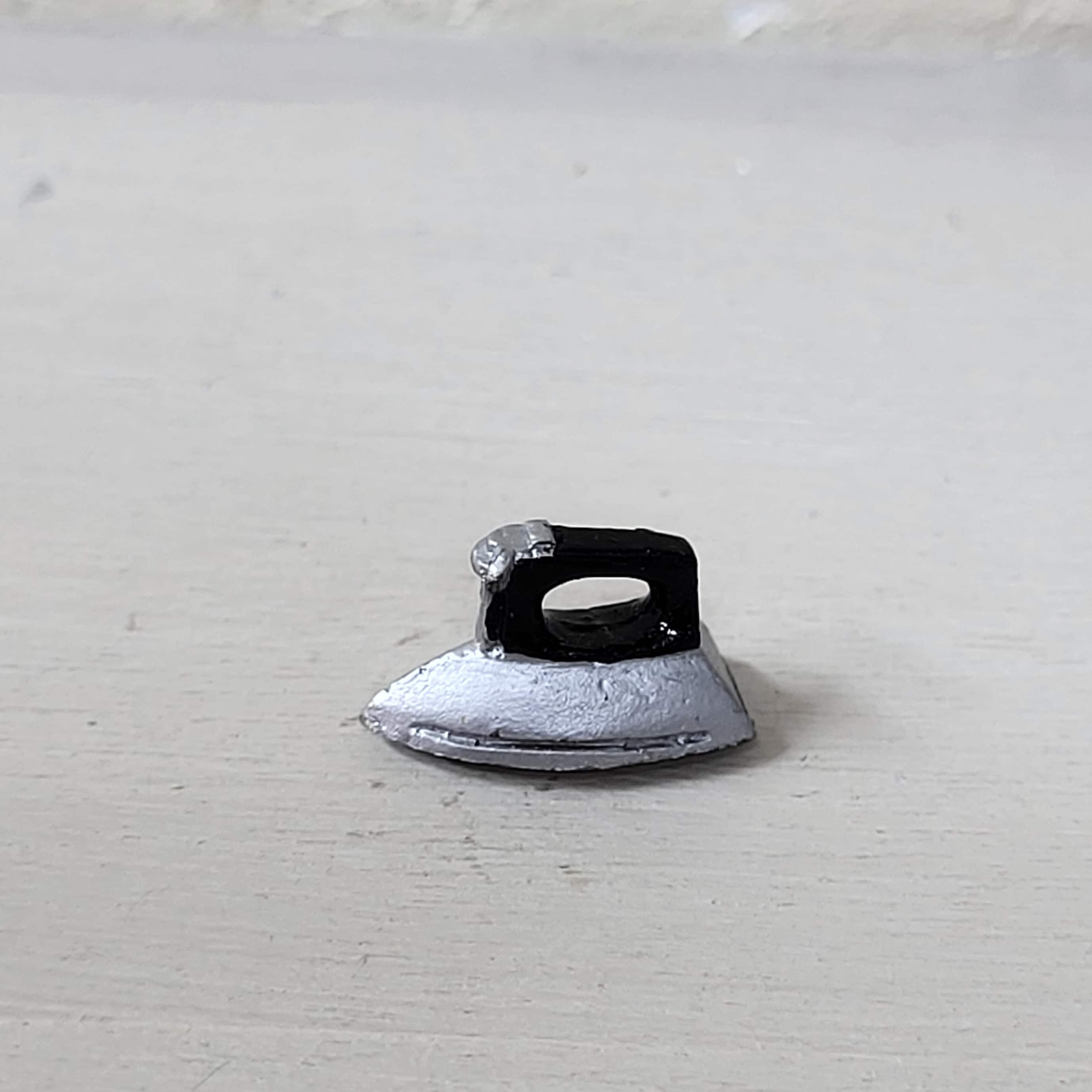 Een miniatuur strijkijzer voor het poppenhuis. Een klein maar herkenbaar detail dat perfect past bij een strijkplank of in een washoekje.